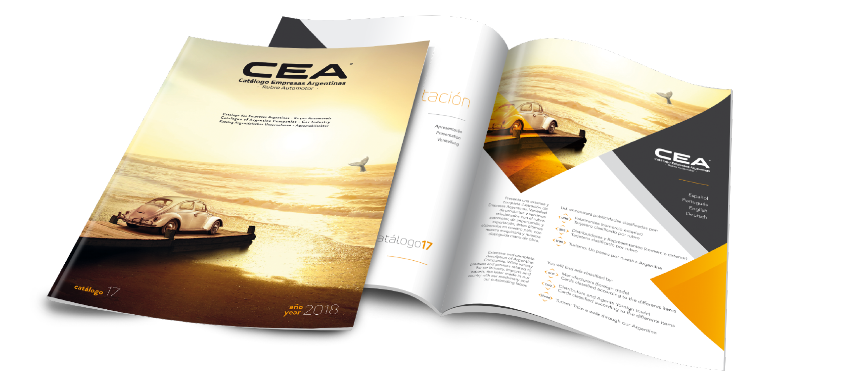 CEA - Catálogo Empresas Argentinas - Rubro automotor, destaca fabricantes y distribuidores argentinos a nivel nacional e internacional del rubro automotor, está editado en cuatro idiomas (español, portugués, inglés y alemán), presenta los informes de marcas más importantes e incluye un tarjetero ordenado por rubros.